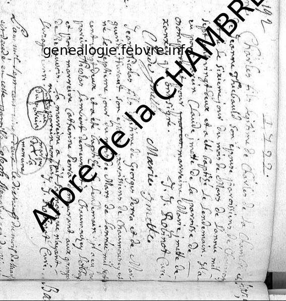 | Naissance d’un fils #8 | Charles de la CHAMBRE 6 mars 1722 |