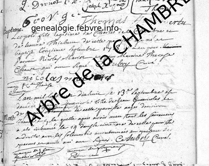 | Naissance d’un fils #6 | Léopold de la CHAMBRE 11 septembre 1718 |