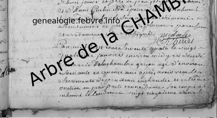 | Décès du grand-père paternel | Sébastien de la CHAMBRE 29 janvier 1709 (Âge 19 ans) |