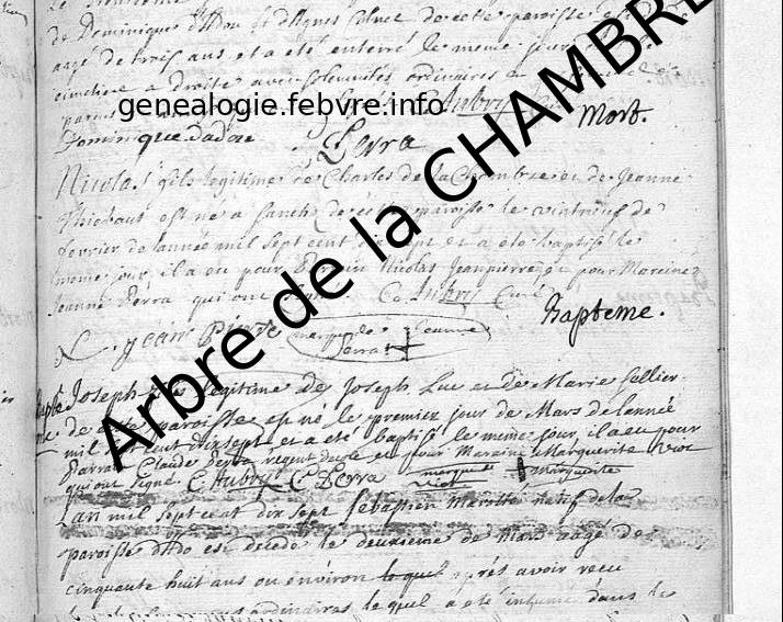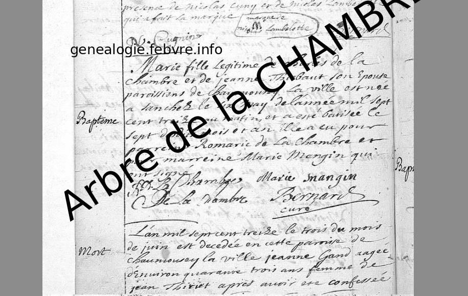 | Décès d’un frère | Jean Nicolas de la CHAMBRE 6 avril 1725 (Âge 3 ans) |