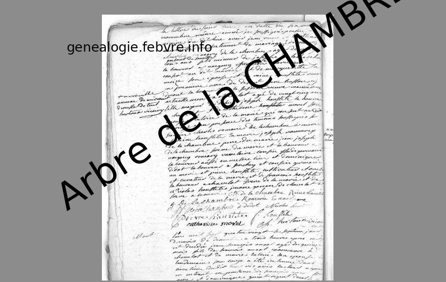 Jeanne Marie de la CHAMBRE Naissance : décembre 1764 41 36 — Uxegney 88390, France Décès : 3 février 1765 — Uxegney 88390, France |