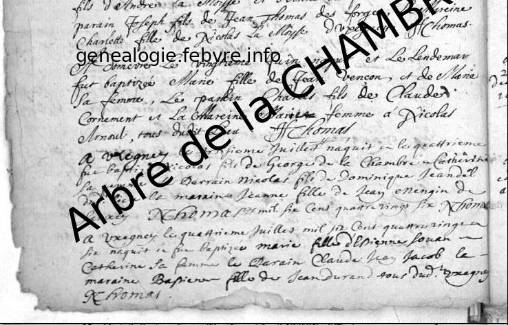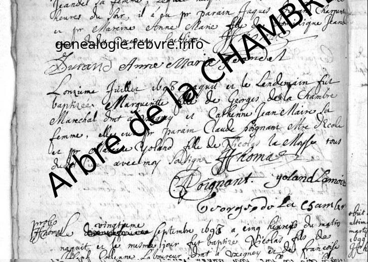 | Naissance d’une sœur | Marguerite de la CHAMBRE 11 juillet 1698 (Âge 6 ans) |