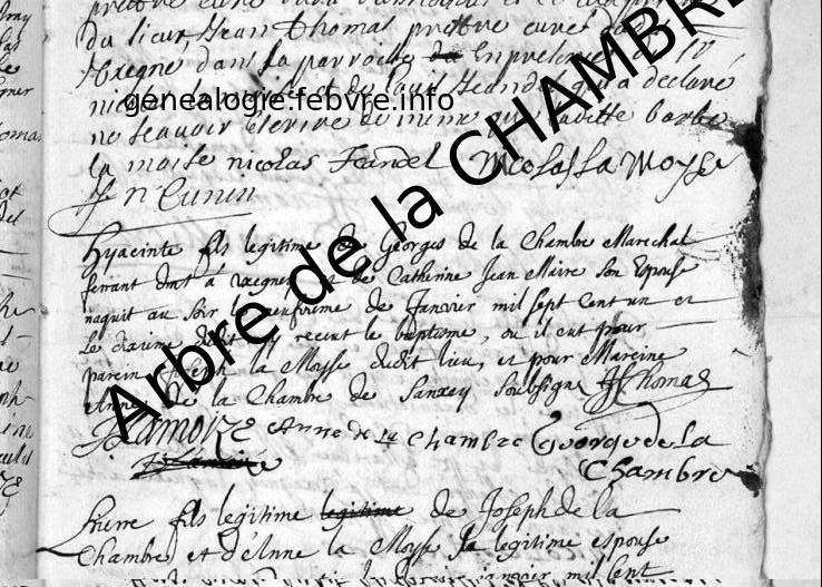 | Décès du grand-père paternel | Sébastien de la CHAMBRE 29 janvier 1709 (Âge 17 ans) |