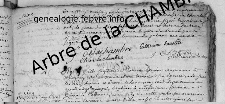 | Décès du grand-père paternel | Joseph de la CHAMBRE 1794 – 3 heures du soir (Âge 8 ans) Note : décédé le 1er jour des sans culotte de l'an 1794 année seconde de la république |