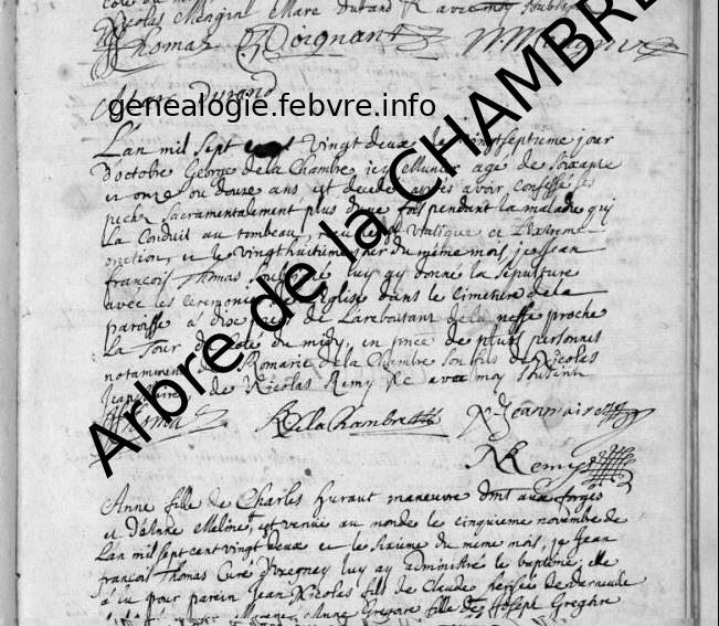 | Naissance d’une fille #5 | Marguerite de la CHAMBRE 11 juillet 1698 (Âge 48 ans) |