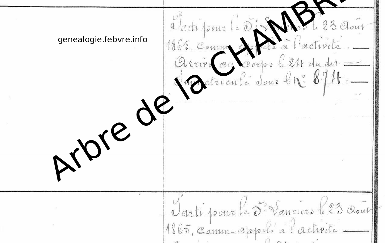 | Profession | Parti pour le Corps 5ème Régiment de Lanciers le 23 août 1865, comme appelé à l'activité, arrive au Corps le 24 du dix...Immatriculé sous le n°874.