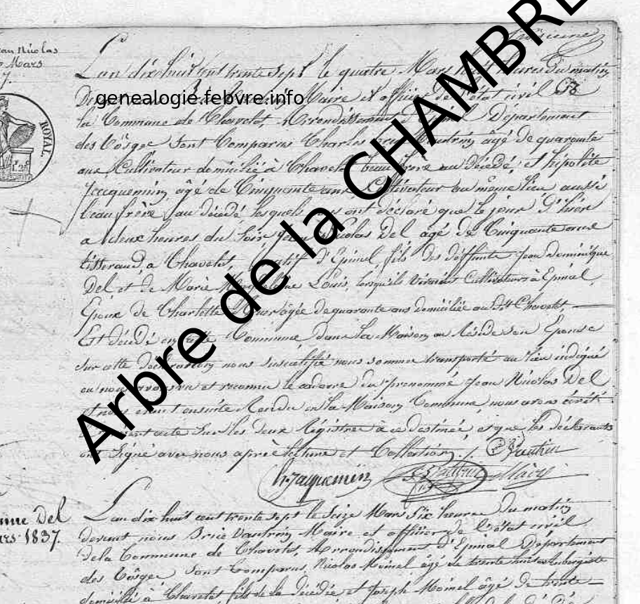 Naissance : 1786 24 — Le Champ du pin Epinal Vosges lorraine Décès : 4 mars 1837 — Chavelot, 88150, France |