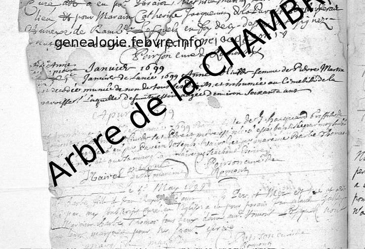 | Décès de la mère | Anne OLIVIER 25 janvier 1699 (Âge 20 ans) |