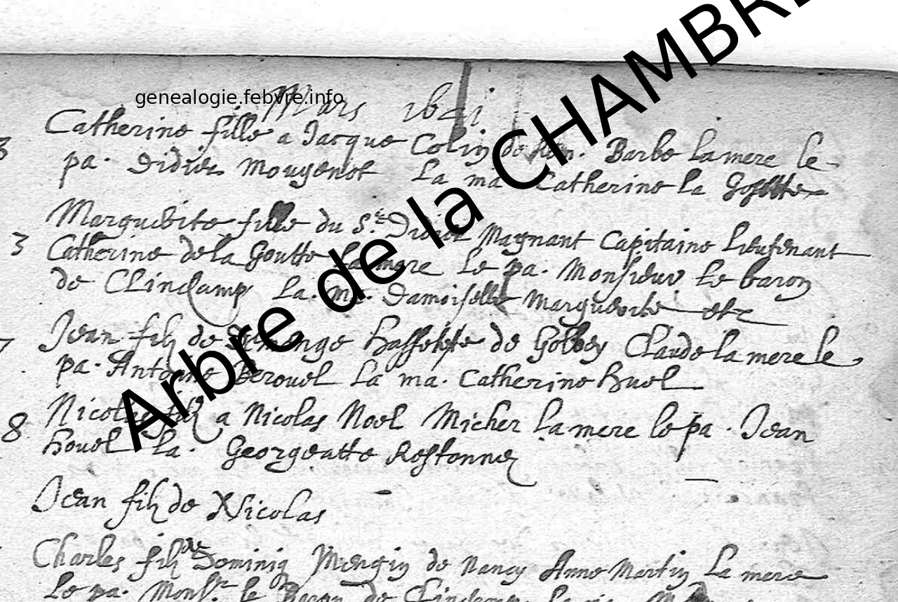 | Naissance | 7 mars 1641 Note : Parrain : Antoine Barouel. Marraine : catherine Buel |