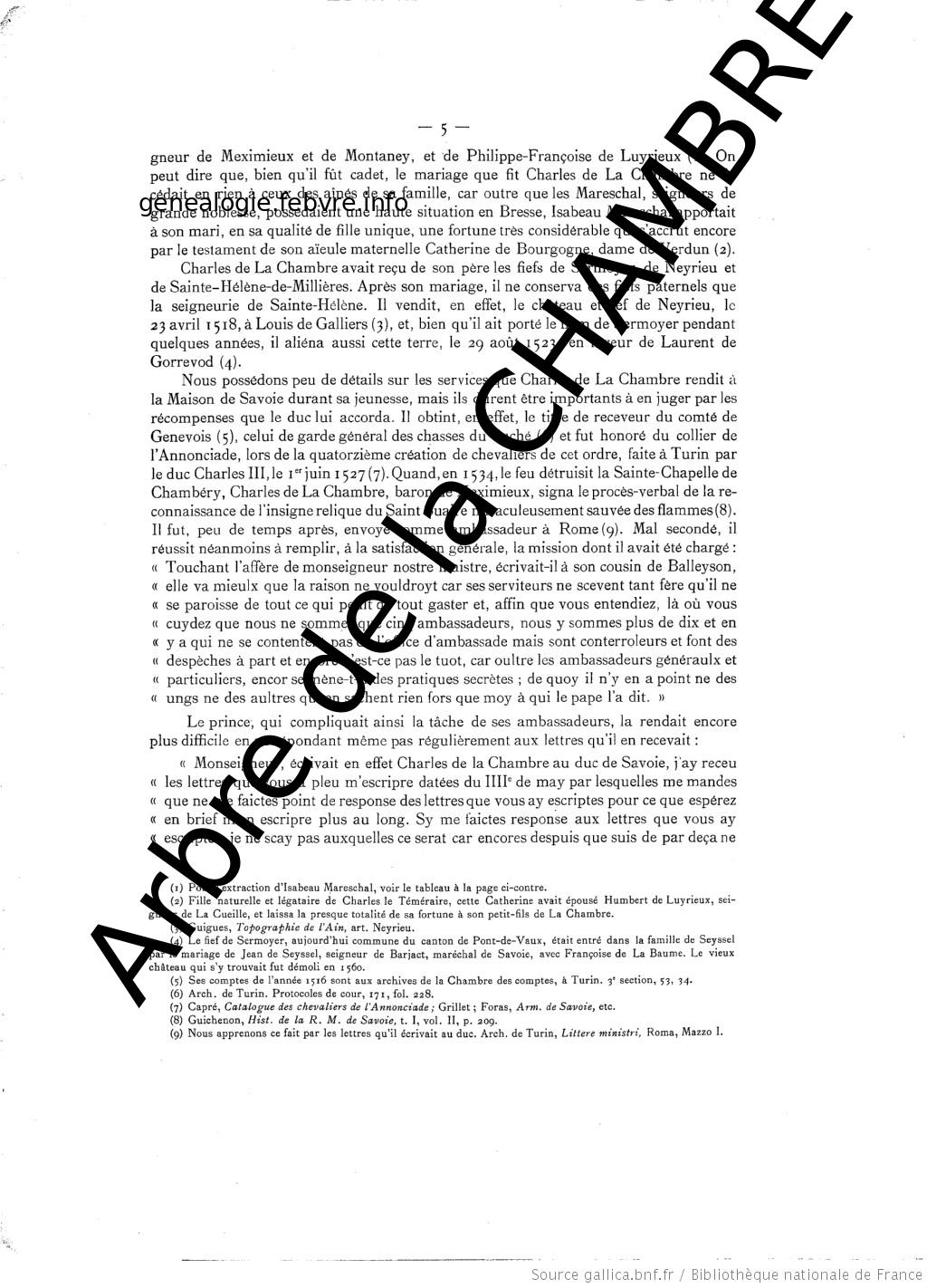 | Décès du père | Comte Louis DE LA CHAMBRE-SEYSSEL 1517 |