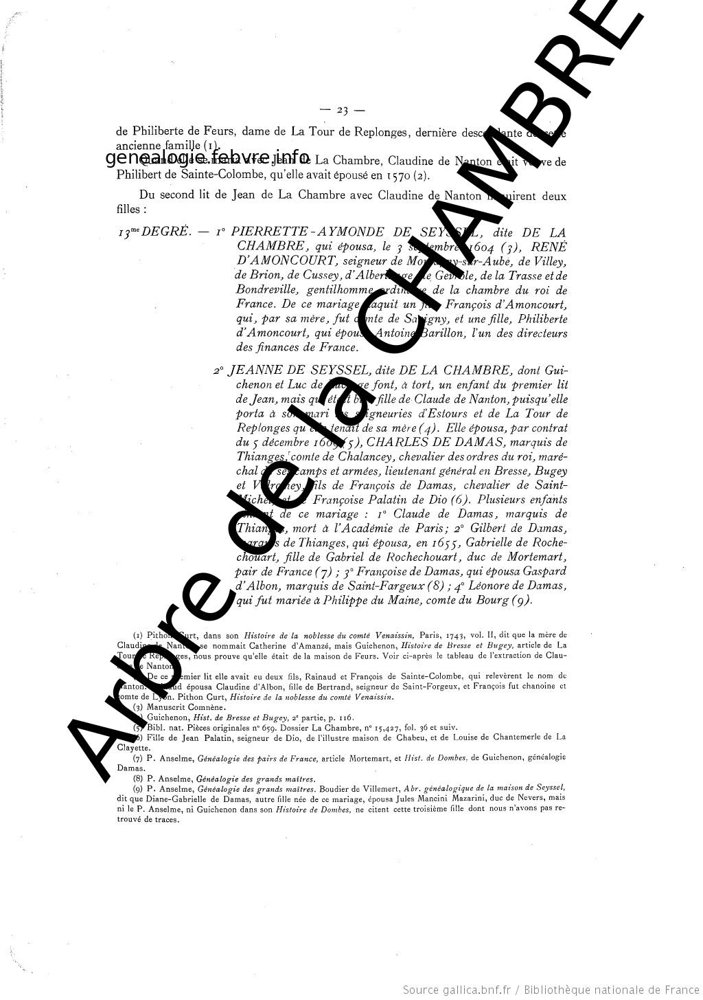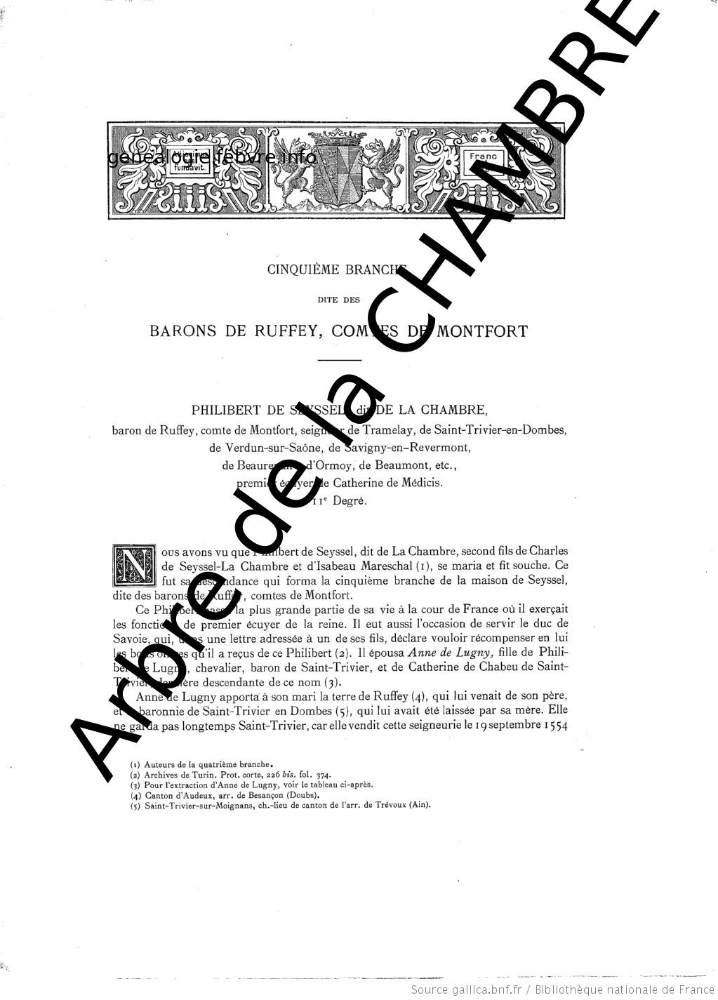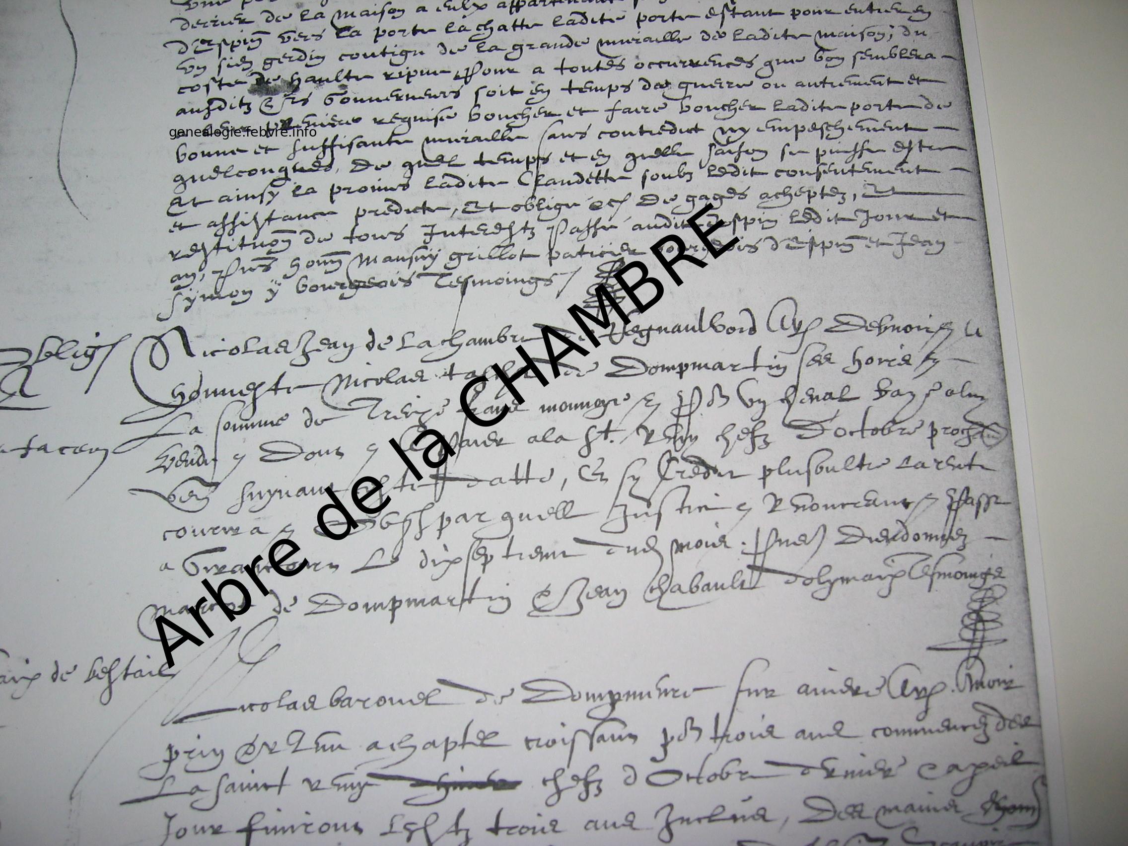 | Mariage | Contrat de mariage de Jean de la Chambre avec Claudine de Nanton est aux archives départementales de Mâcon, E 161.