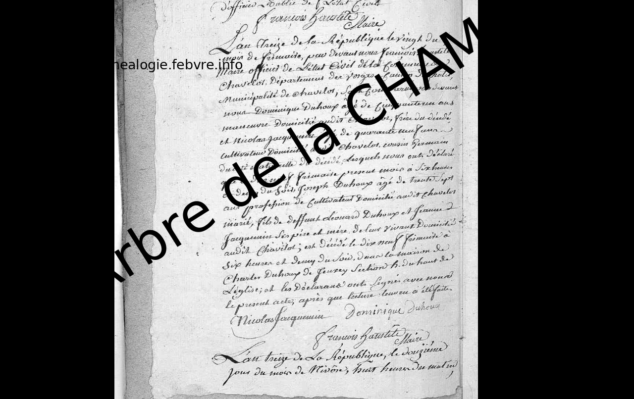 | Décès de la grand-mère paternelle | Jeanne JACQUEMIN 1799 – 3 heures (Âge 2 ans) Source : Archives de Vosges Note : Décès : 25 germinal AN VII |