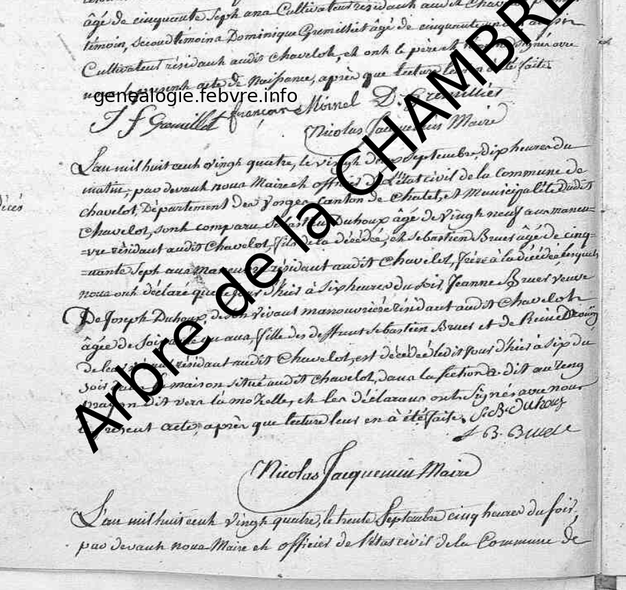 | Décès de la mère | Jeanne BRUYERE 21 septembre 1824 (Âge 28 ans) |