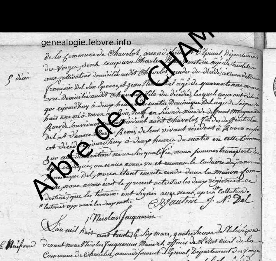 Naissance : 1762 — Raon-aux-bois 88 vosges lorraine Décès : 1830 — Chavelot, Vosges, Lorraine, France |