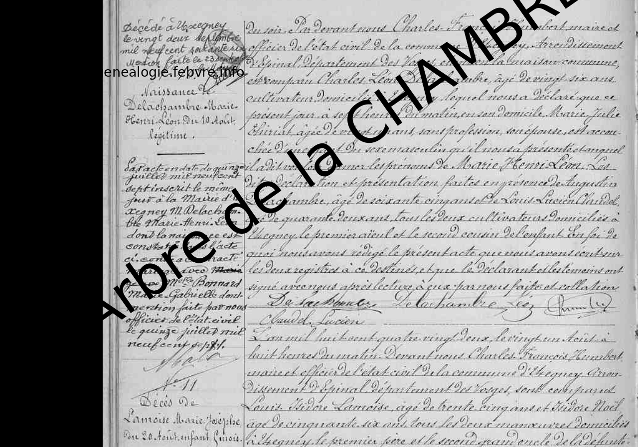| Naissance d’un frère | Charles Lucien de la CHAMBRE 24 novembre 1887 (Âge 5 ans) Source : Archives de Vosges |