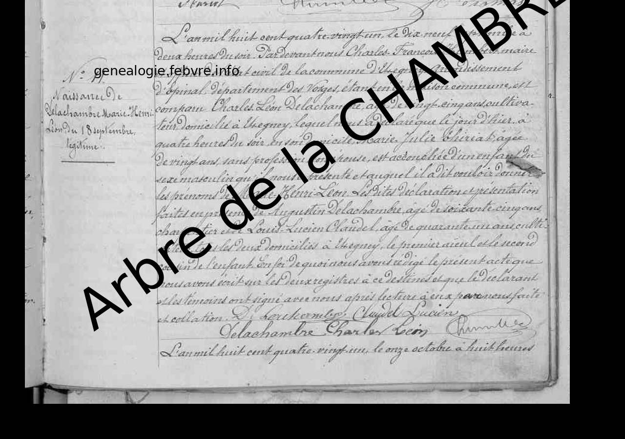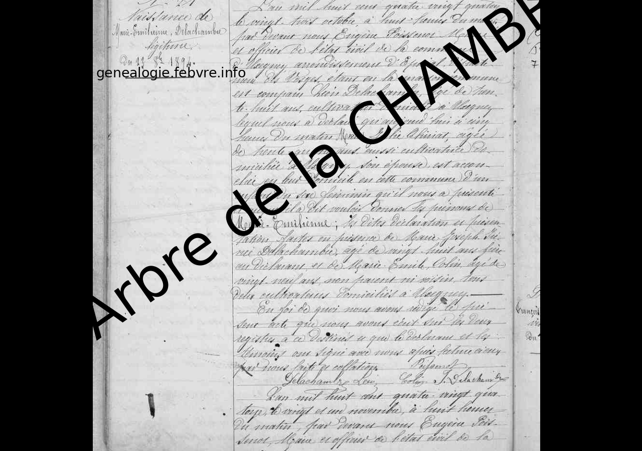 | Décès du grand-père paternel | Augustin de la CHAMBRE 1891 (Âge 3 ans) |