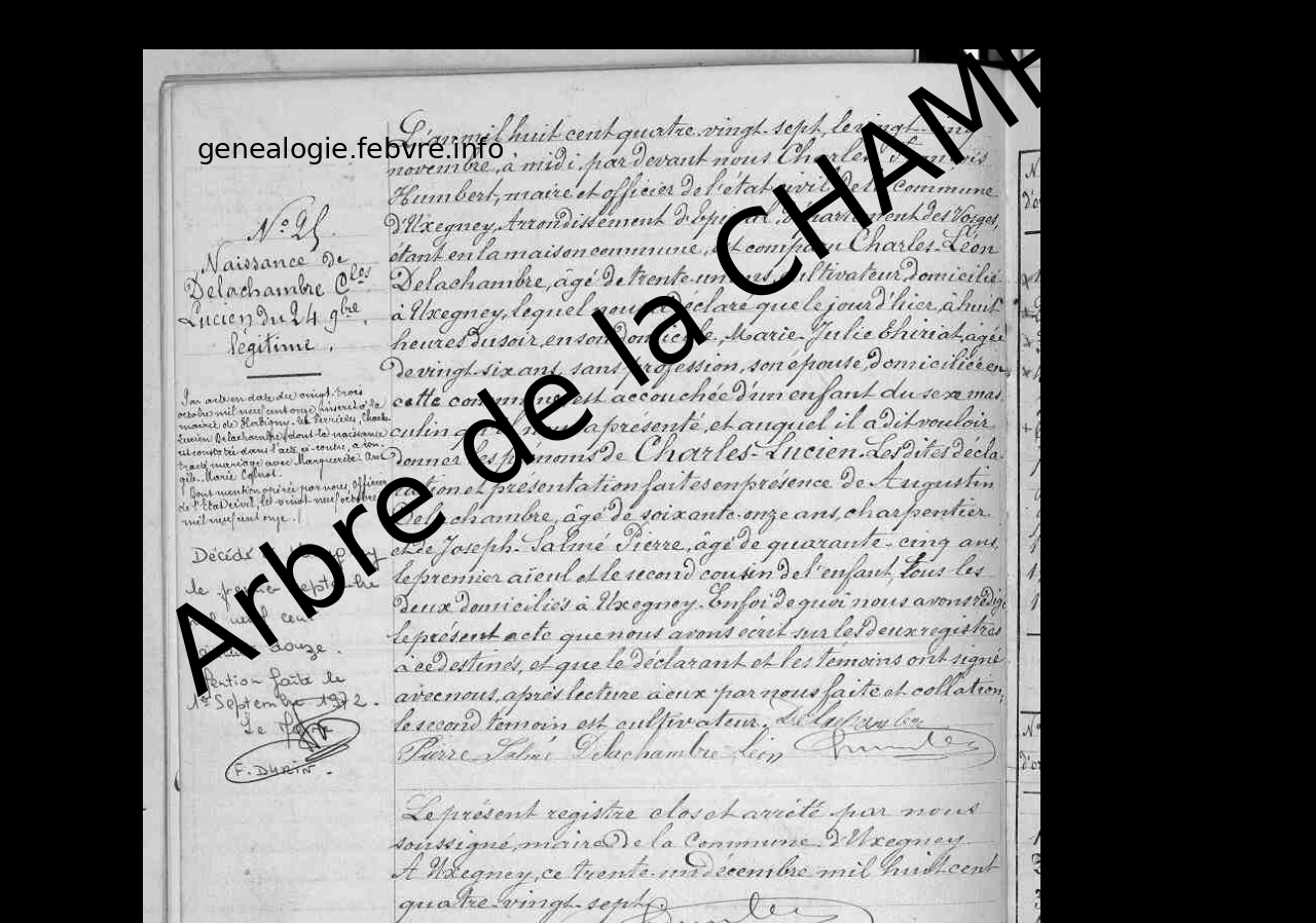 | Décès du grand-père paternel | Augustin de la CHAMBRE 1891 (Âge 11 mois) |
