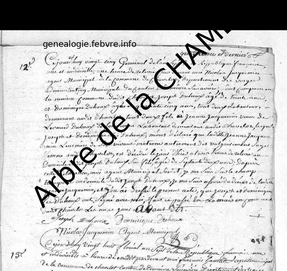 1800 - 5 germinal An VII de la République Décès Jeanne JACQUEMIN épouse DUHOUX index.png